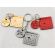 Upominek dla zakochanych w postaci breloczka składającego się z dwóch zawieszonych razem elementów.