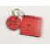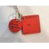 Brelok ma różną kolorystykę: czerwoną, srebrną czy jasnego drewna.