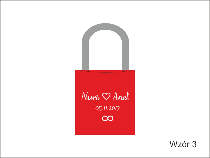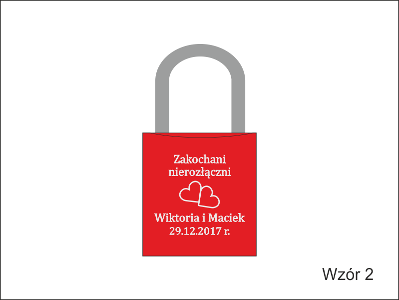 Grawer dedykacji na kłódce jest dowolny i można wykorzystać jeden z wzorów lub wykonać wg indywidualnych ustaleń.