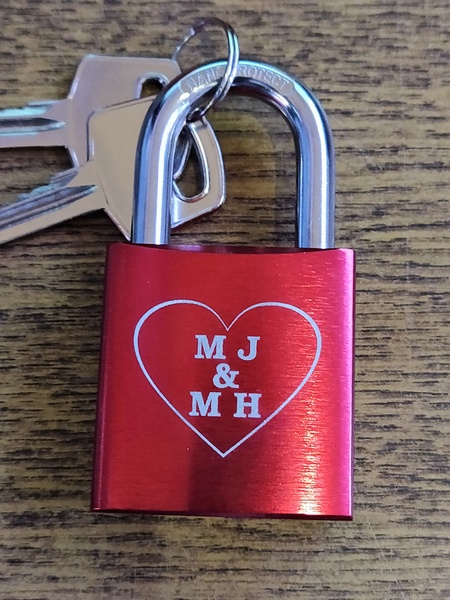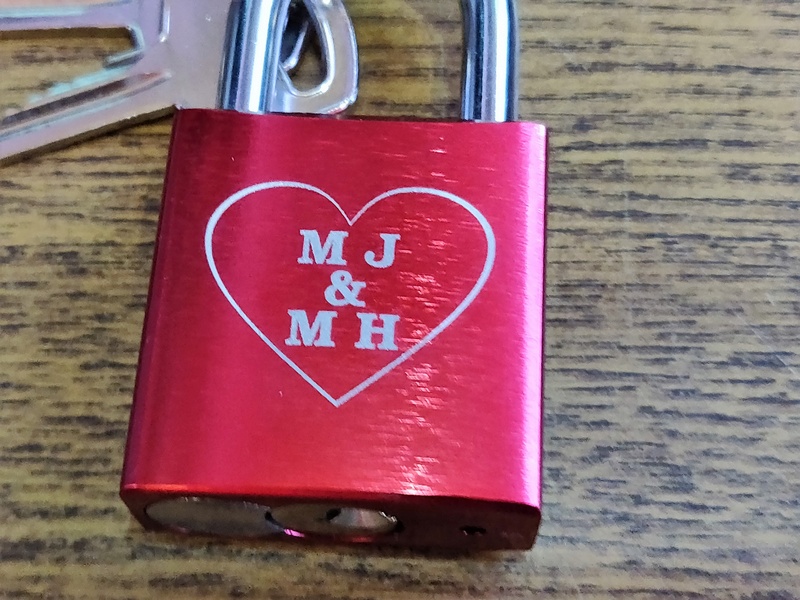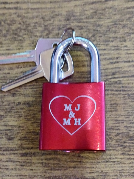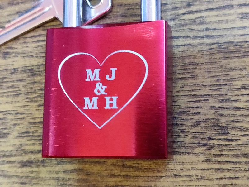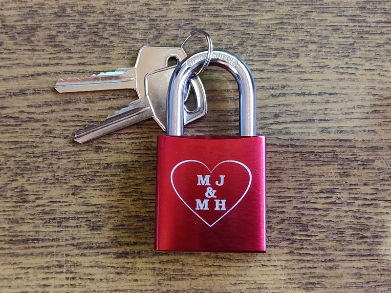 Na kłódce można wykonać grawer laserowy ozdobnych grafik czy dedykacji dla Zakochanych.