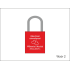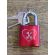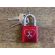 Pamiątkowa prezentowa czerwona kłódka aluminiowa firmy Abus z grawerem dedykacji i ozdobnych grafik.