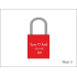 Korpus kłódki jest wykonany z aluminium anodowanego na czerwono, dlatego grawer wychodzi na srebrno/szary kolor.