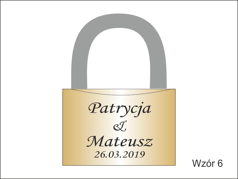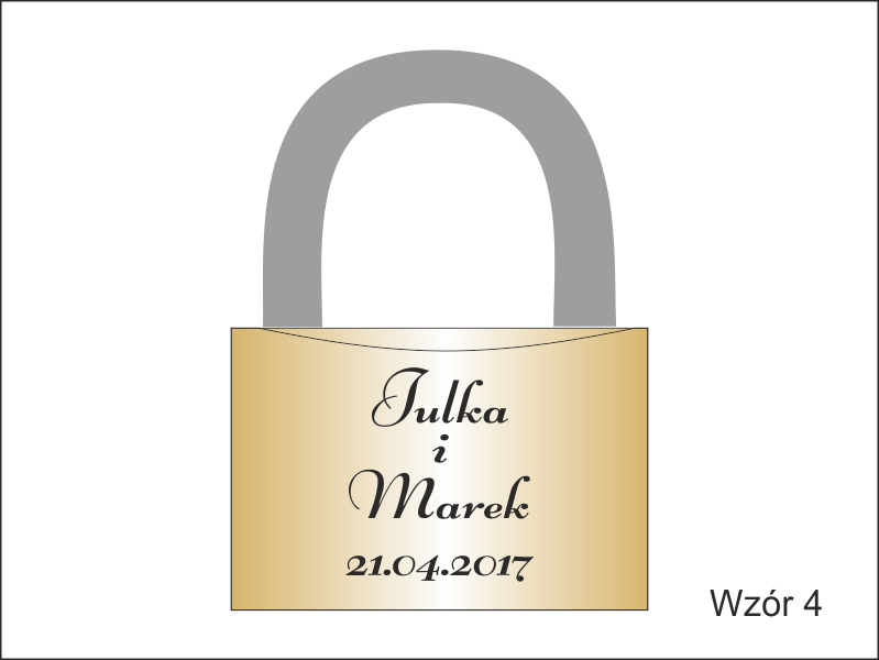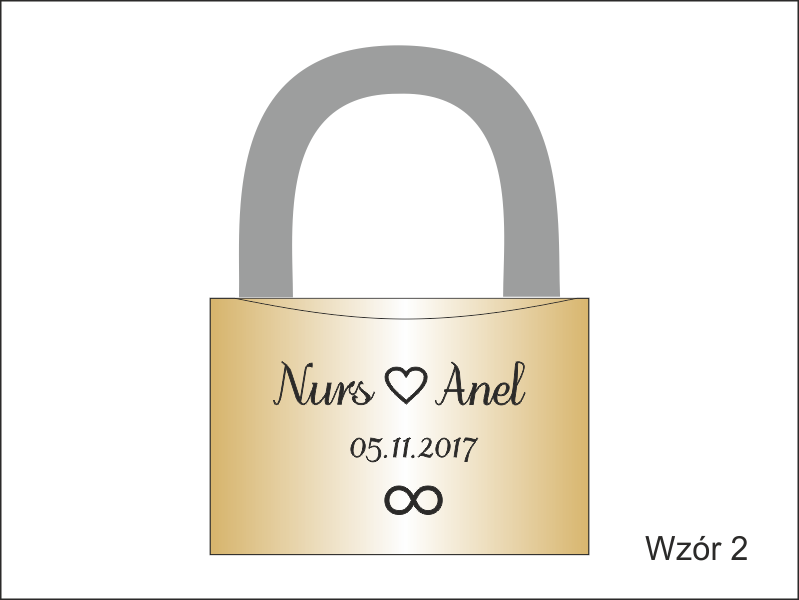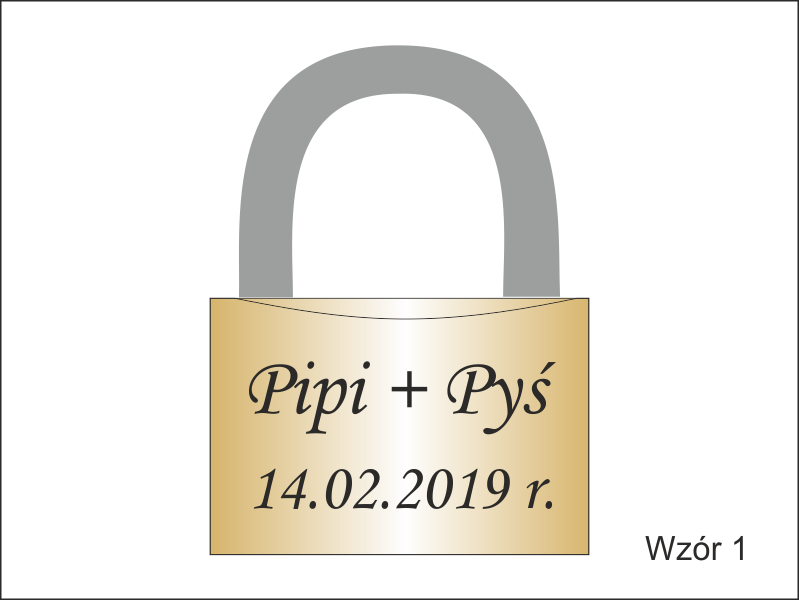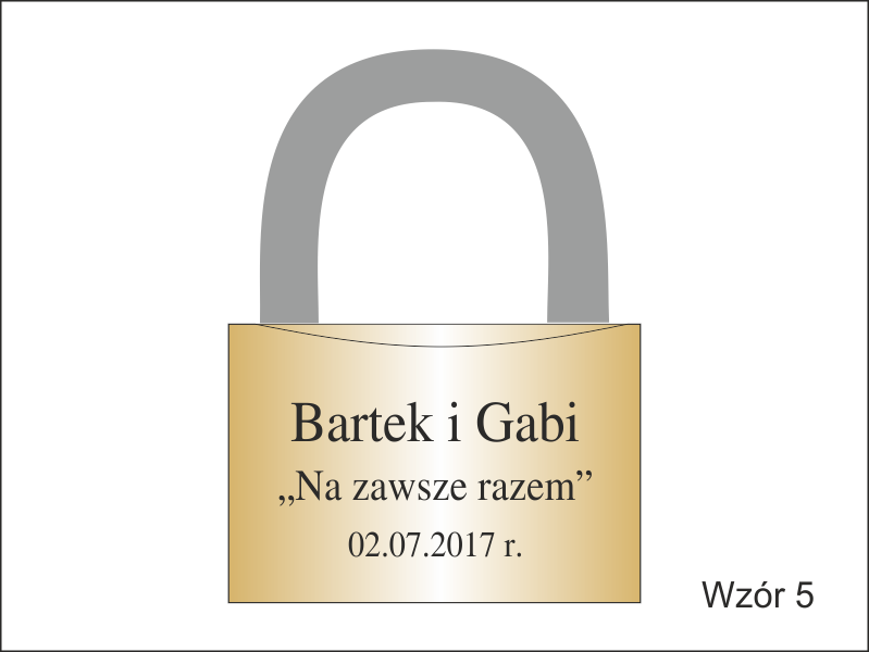 Grawer dedykacji na kłódce jest dowolny i można wykorzystać jeden z wzorów lub wykonać wg indywidualnych ustaleń.