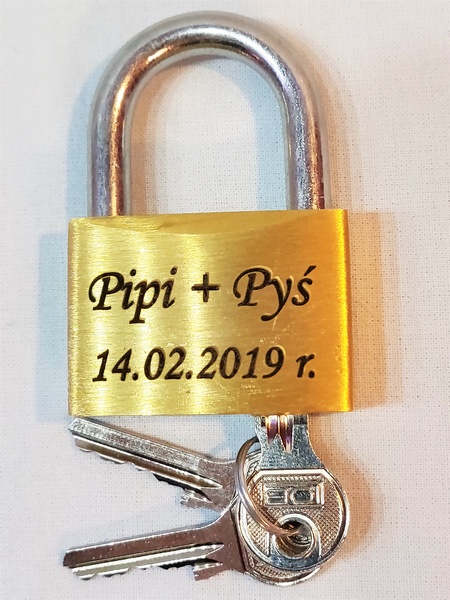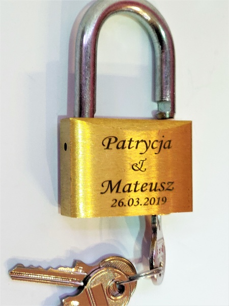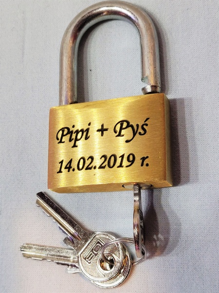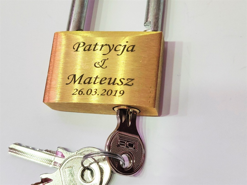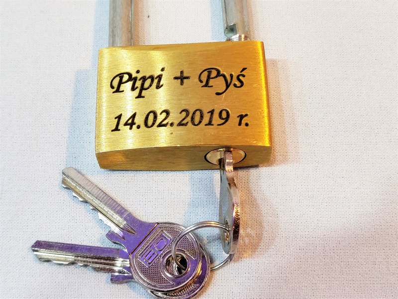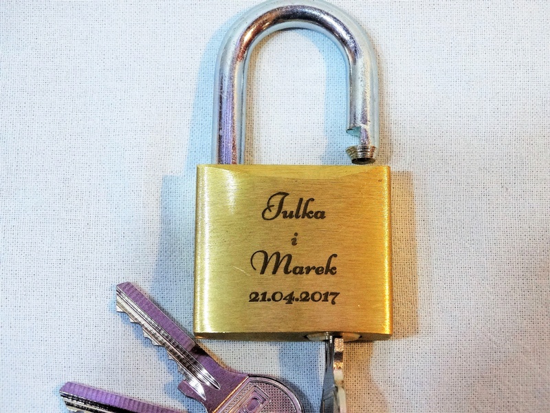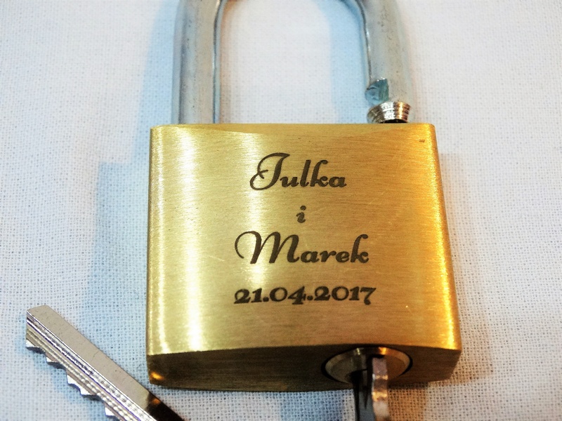 Na kłódce można wykonać grawer laserowy ozdobnych grafik czy dedykacji dla Zakochanych.