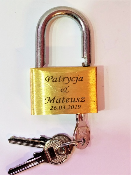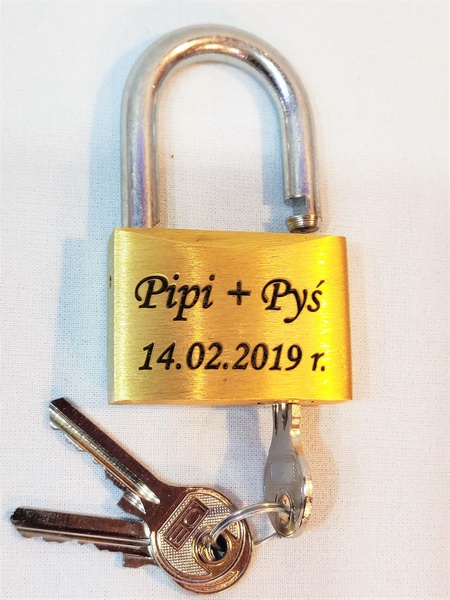 Korpus kłódki jest wykonany z mosiądzu, dlatego grawer wychodzi na czarno/grafitowy kolor.