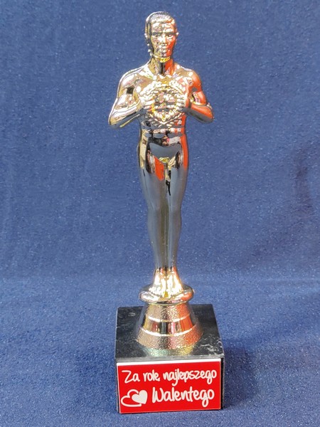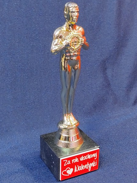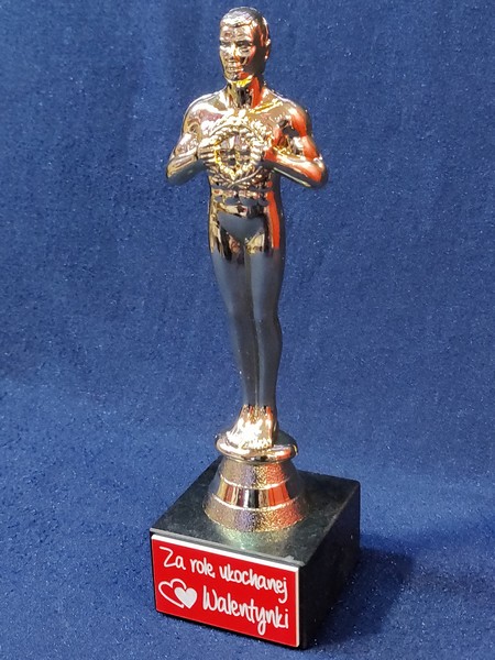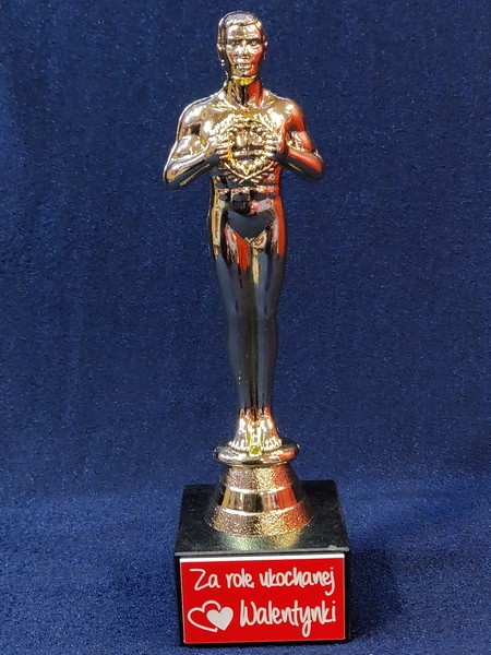 Upominek dla Zakochanych w formie statuetki oskara z grawerem dedykacji za rolę Walentynki lub za rolę Walentego.
