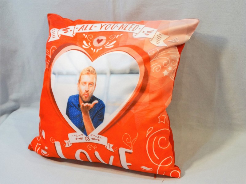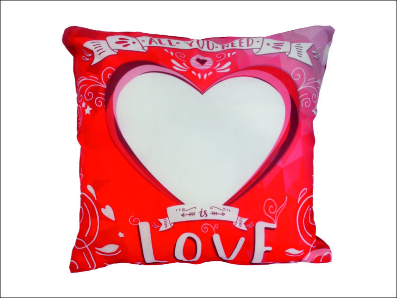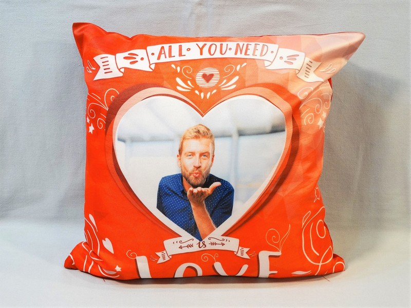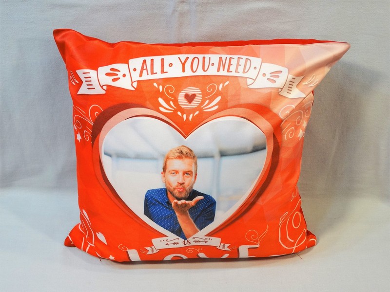 Poszewka ma czerwoną tonację, a w wydzielonym polu można nadrukować dowolną dedykację czy zdjęcie.
