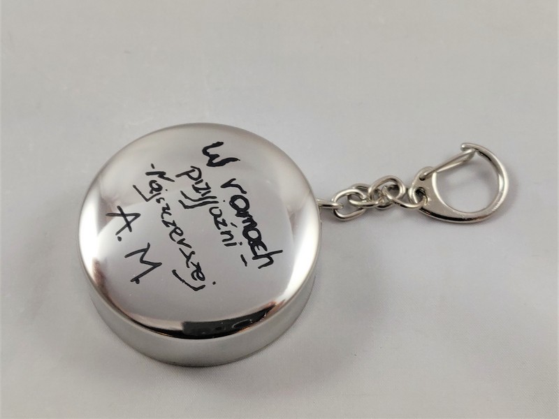 Na breloku istnieje możliwość graweru dowolnej dedykacji: