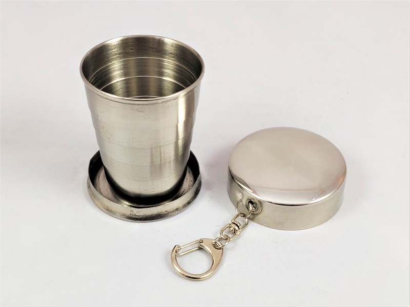 Wyjątkowy metalowy brelok do kluczy pełniący zarazem funkcję kieliszka.