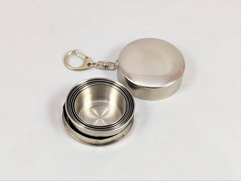 Po rozłożeniu metalowych pierścieni powstanie pojemny metalowy kieliszek.