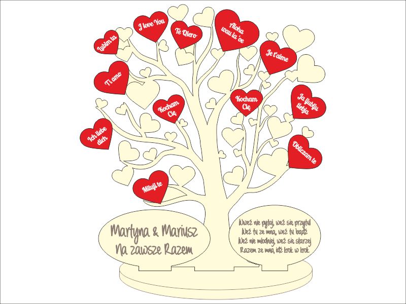 W szczególności warto zindywidualizować drzewko poprzez dodanie imion - zakochanych, ukochanej lub ukochanego.