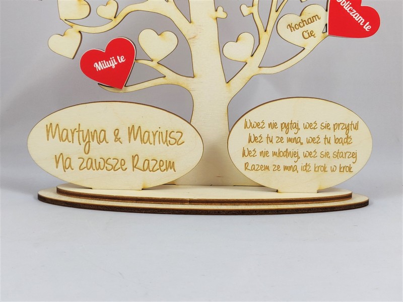 Na drzewku można wykonać grawer dowolnej dedykacji, treści, życzeń.