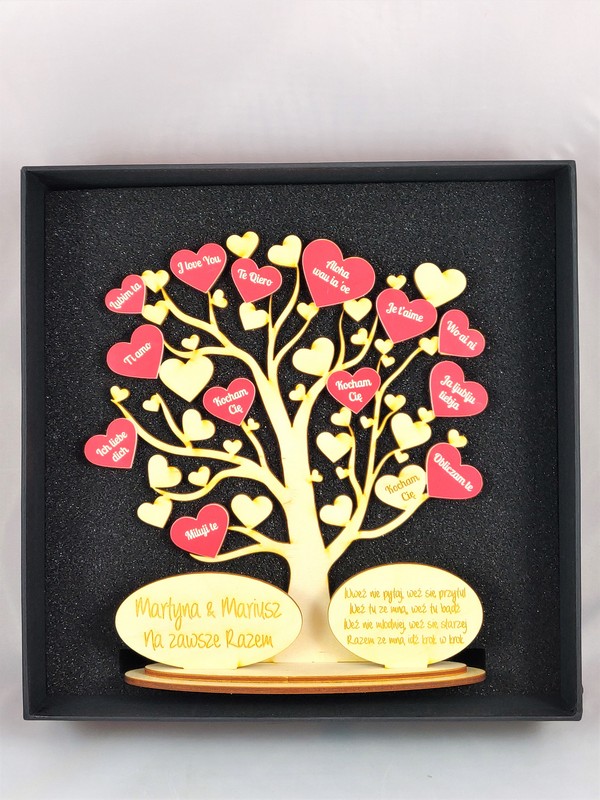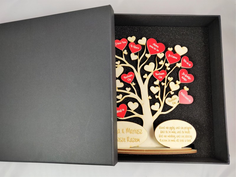 Drzewko może być wspólnym prezentem dla zakochanych, ale także osobnym upominkiem dla ukochanego jak i dla ukochanej.