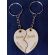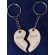 Propozycja na upominek dla zakochanych w postaci kompletu breloczków w kształcie połówek serca.