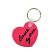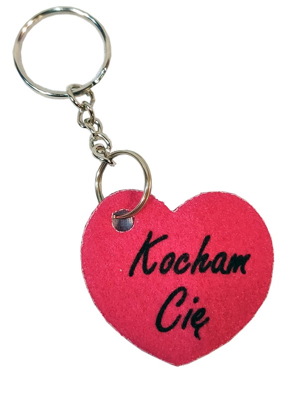 Brelok ma kształt wyciętego z filcu serca, na którym wykonany jest nadruk dedykacji.