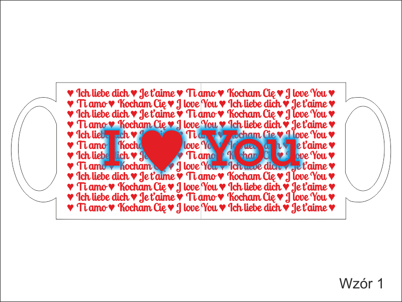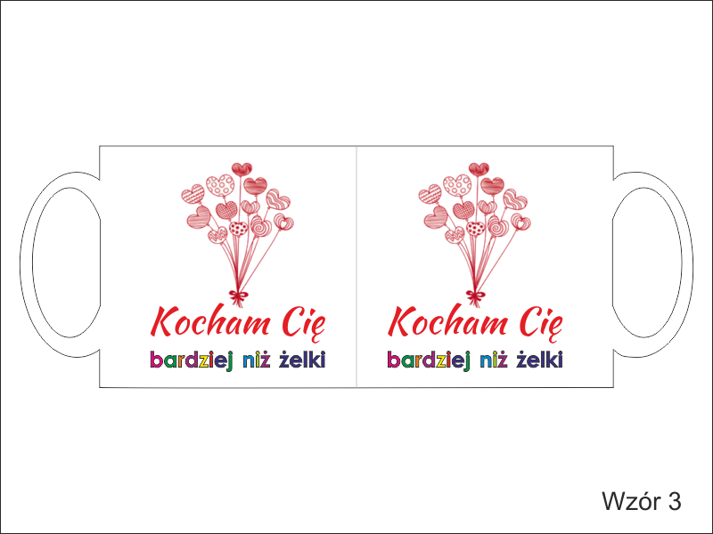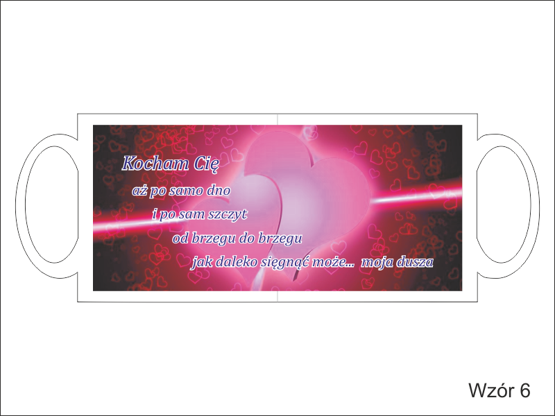 Nadruk dedykacji na kubku jest dowolny i można wykorzystać jeden z wzorów lub wykonać wg indywidualnych ustaleń.