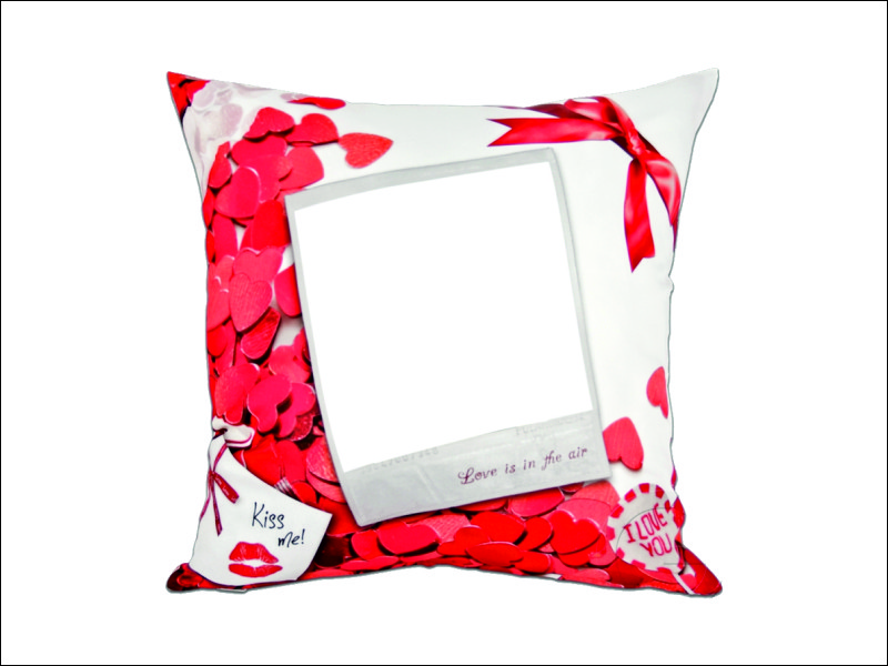 Poszewka ma czerwoną tonację, a w wydzielonym polu można nadrukować dowolną dedykację czy zdjęcie.